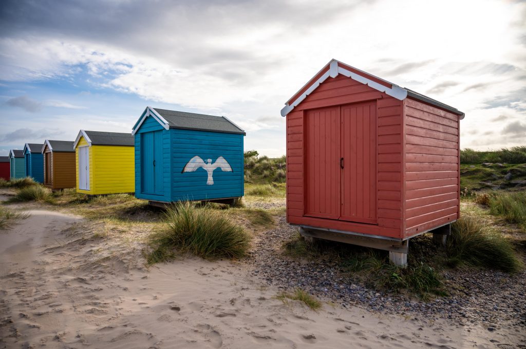 Findhorn Beach Huts, colourful cabins lining the Moray coast, provide seaside retreats, family gatherings, and photography opportunities, offering a charming way to enjoy Scotland’s coastal beauty.